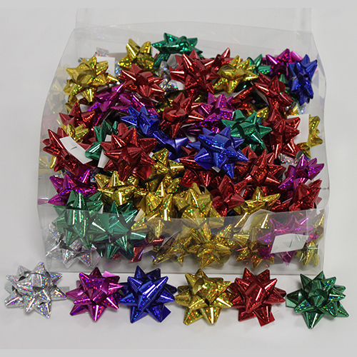 Набор из 100 шт Бант "Звезда" голография "Medium" в ассортим.d=4