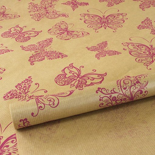 Бумага крафт цветочная "Мотыльки розовые" 72см*10м. 40 г/м2 22шт/уп