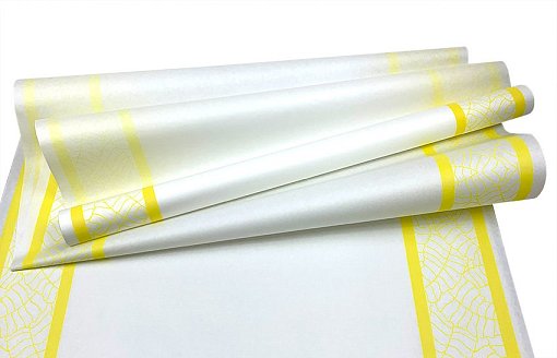 Бумага Дизайн.БЕЛЫЙ крафт"Кайма Листья цветные желтый"70смх10м. 50г/м2 6 шт/уп