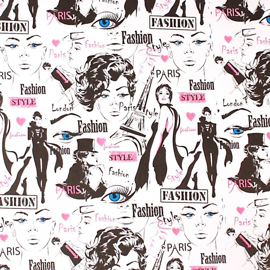 Бумага крафт "Fashion" 70см*8.5м.Черный с роз.на бел.фоне 9шт/уп