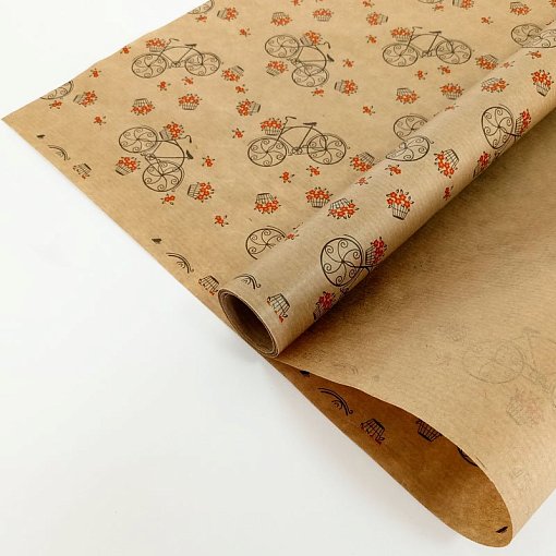 Бумага крафт цветочная "Велосипеды" 72см*10м. 40 г/м2 22шт/уп
