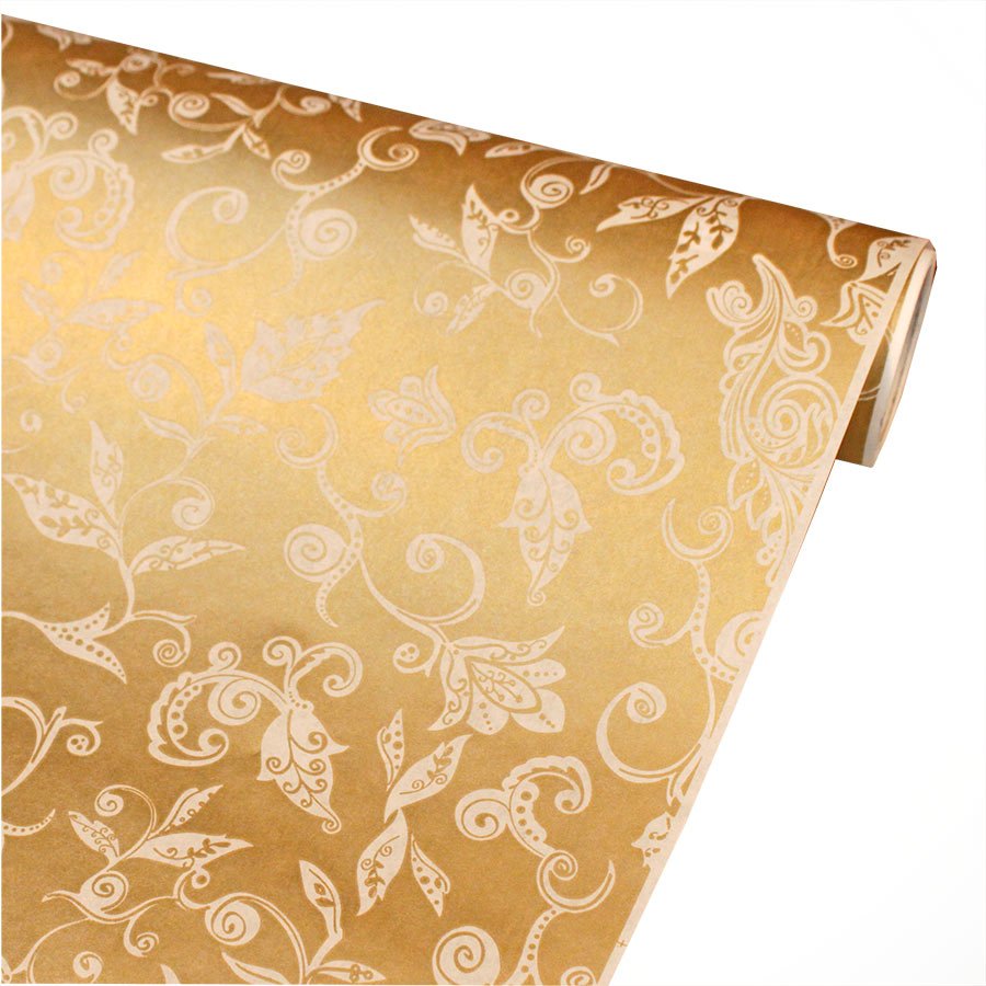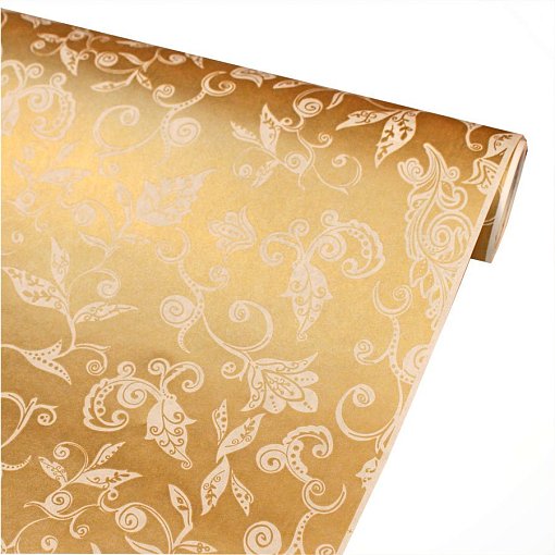 Бумага Дизайн. БЕЛЫЙ крафт "Сказочная гжель, золото"70смх10м. 40г/м2 6 шт/уп