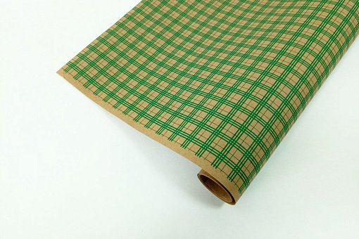 Бумага крафт цветочная "Клетка Роял Зеленая" 70см*10м. 70 г/м2 25шт/уп