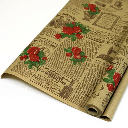 Бумага крафт цветочная Кутюрье коричн/красн/зел 70см*10м. 60 г/м2 10шт/уп