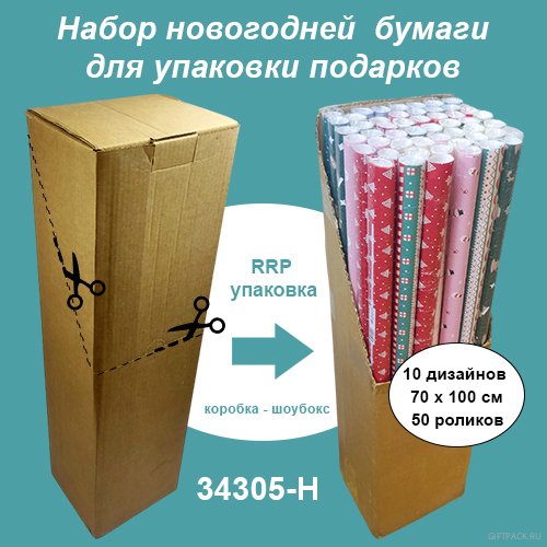 Набор новогодней упаковочной бумаги 1*0,7м. 10 дизайнов по 5 листов. 50рулонов/кор.