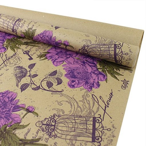 Бумага крафт цветочная Peones сир/фист/фиол 70см*10м. 60 г/м2 10шт/уп