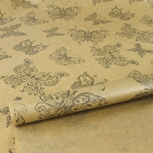Бумага крафт цветочная "Мотыльки серые" 72см*10м. 40 г/м2 22шт/уп