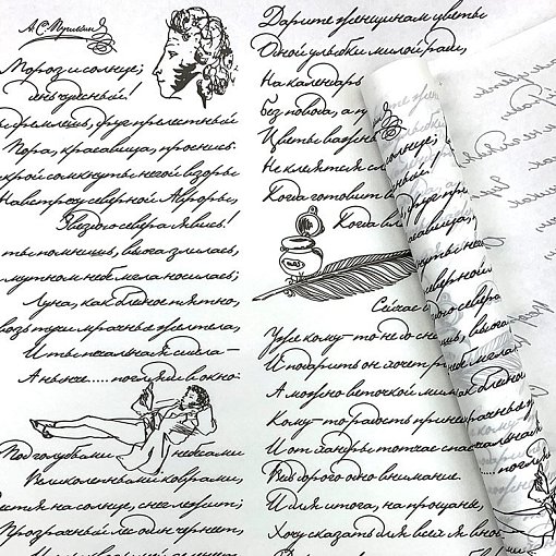 Бумага БЕЛЫЙ крафт 50г/м2 "Пушкинские строки черный."70смх10м 6 шт/уп