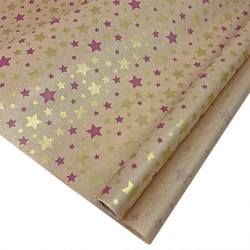 Бумага Дизайнерский крафт"Звезды Фиол/пурпур/зол" 40г/м2 70см х 10м
