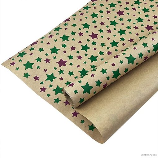 Бумага крафт 70г/м2 "Звёзды фиолетй/пурпур/зел" 70см х 10м