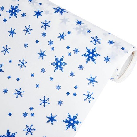 Бумага Дизайн. БЕЛЫЙ крафт "Снежинки, синий"70смх10м. 40г/м2 6 шт/уп
