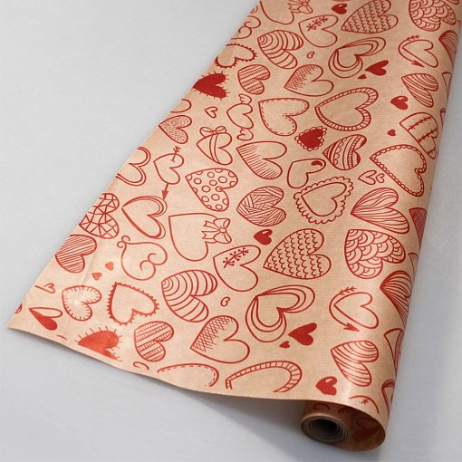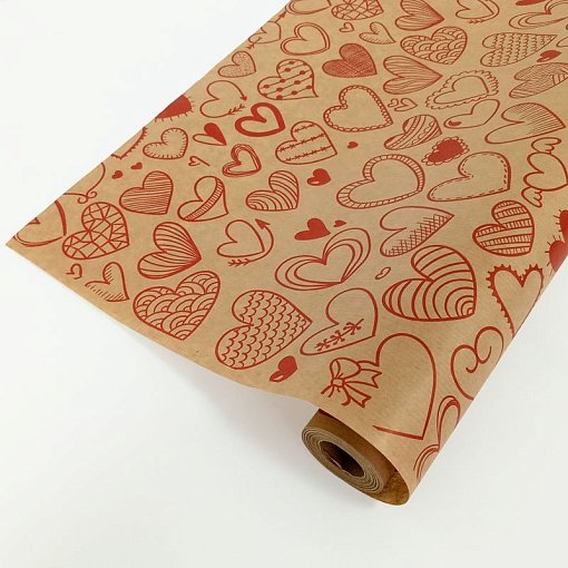 Бумага крафт цветочная "Сердечки фигурные красные" 72см*10м. 40 г/м2 22шт/уп