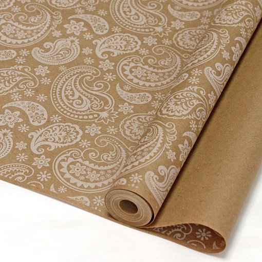 Бумага крафт цветочная "Огуречный узор белый" 70см*10м. 70 г/м2 25шт/уп