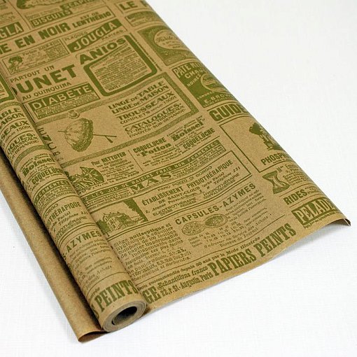 Бумага крафт цветочная Винтажная газета фисташк 70см*10м. 60 г/м2 10шт/уп