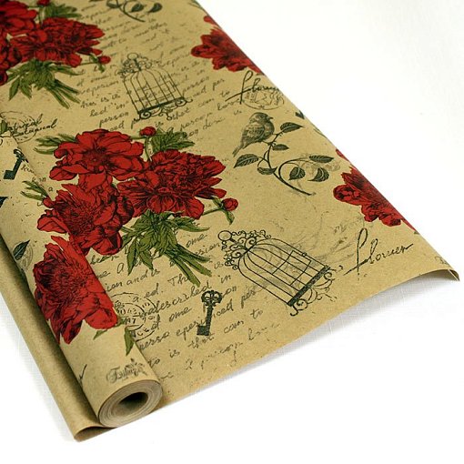 Бумага крафт цветочная Peones красн/зел/чёрн 70см*10м. 60 г/м2 10шт/уп