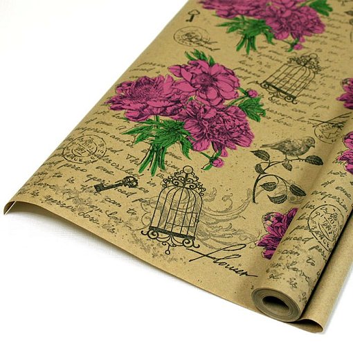 Бумага крафт цветочная Peones малин/зел/чёрн 70см*10м. 60 г/м2 10шт/уп