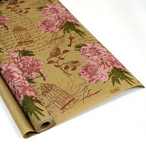 Бумага крафт цветочная Peones красн/сал/фист 70см*10м. 60 г/м2 10шт/уп