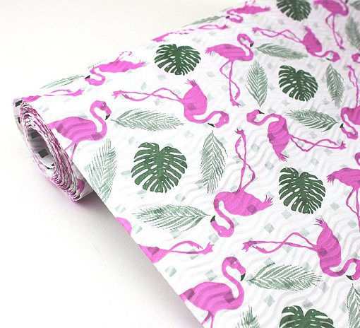 Бумага жатая с рисунком ВЛАГОСТОЙКАЯ ФЛАМИНГО белая в рулоне 70см*5м 25рул/тм