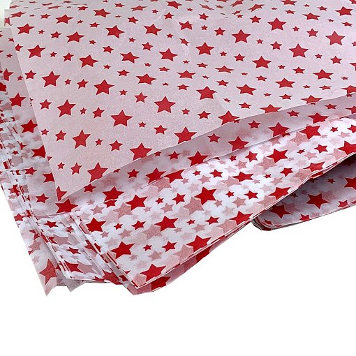 Бумага тишью 50*75см 1301 Красные звёзды в листах 10л/уп. 17 гр 300уп./т.м.