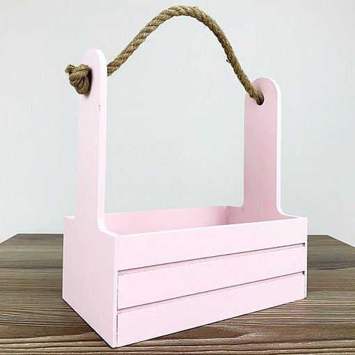 Кашпо деревянное розовое 25,5*14,5*11/28 шнур