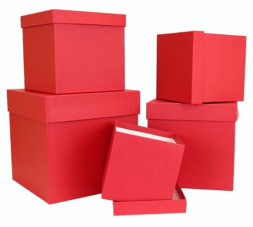 Набор коробок № 2 Кубы. Красный КТ 5шт" 21см*21см*21см