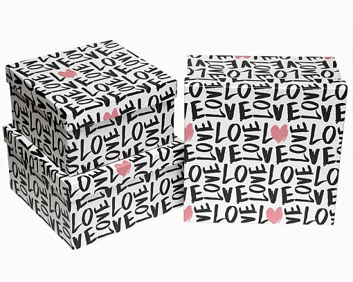 Набор коробок № 75 Квадрат Чёрно-Красная Любовь 3шт" 19,5см*19,5см*11см