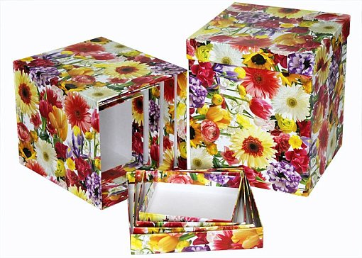 Набор коробок Квадрат. Цветы ассорти 5шт" 18,5см*18,5см*22см