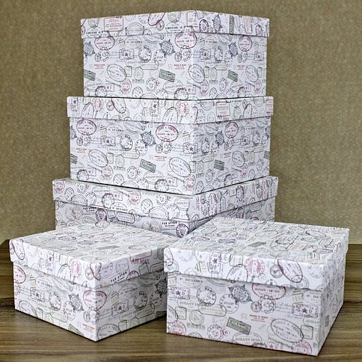 Набор коробок №76 Квадрат 5шт. Почтовые штампы 22см*22см*12см