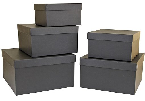 Набор коробок №76 Квадрат 5шт. Чёрный КТ 22см*22см*12см