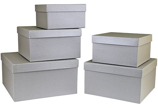 Набор коробок №76 Квадрат 5шт. Перламутровое Серебро 22см*22см*12см