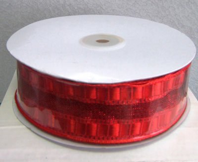 Лента тканая с люрексом красная 38мм/30ярдов 120 т.м.