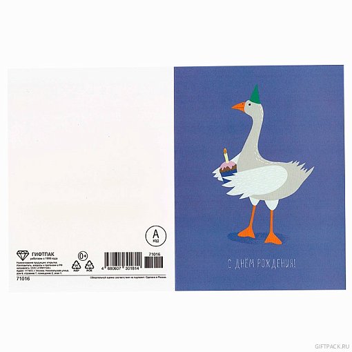 71016 Двойная открытка Код А Гусь в зеленом колпачке. ОТ