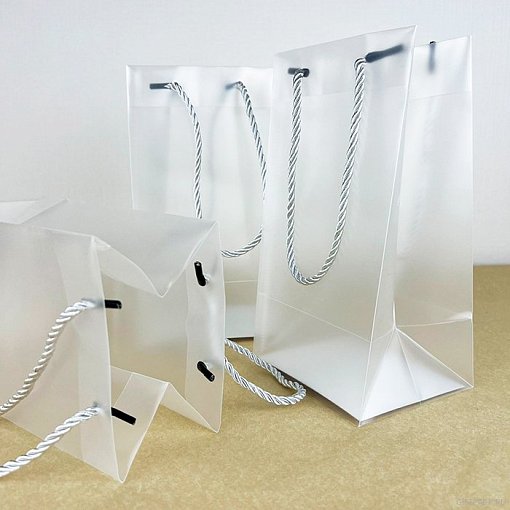 Сумка из белого пластика с веревочными ручками 12*22*10 12шт/уп 600 т.м.