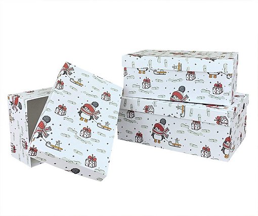 Набор коробок НГ № 74 Пингвины с подарками 3шт" 23см*16см*9,5см 460000074025