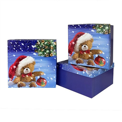 Набор коробок НГ № 712 Квадрат САНТА ТЕДДИ 3 шт. 26см*26см*14см 72001