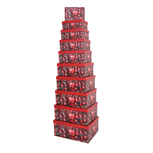 Коробка/набор НГ из 10 шт. Прямоугольник "Красные Шары" 37*29*16 4 т.м.