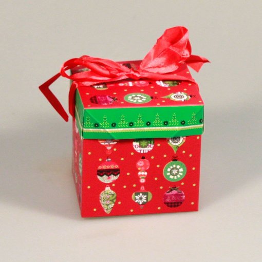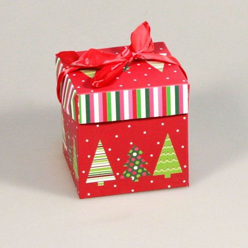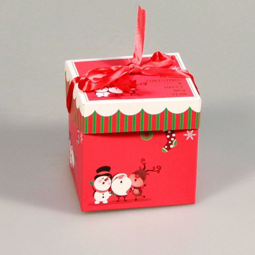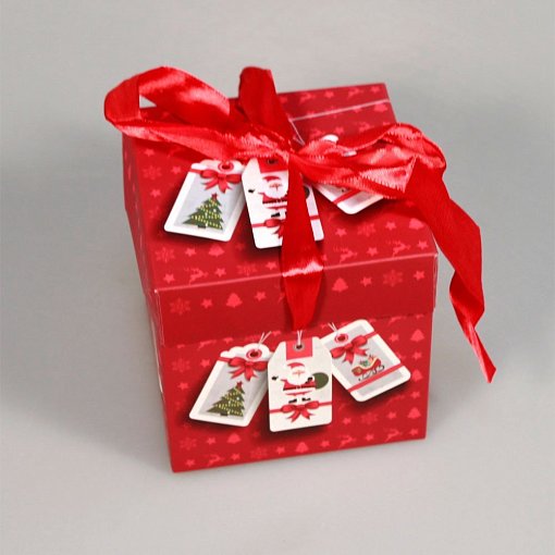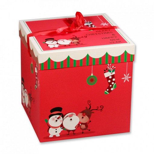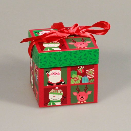В упаковке 12 коробок одного размера 6 различных новогодних рисунков.