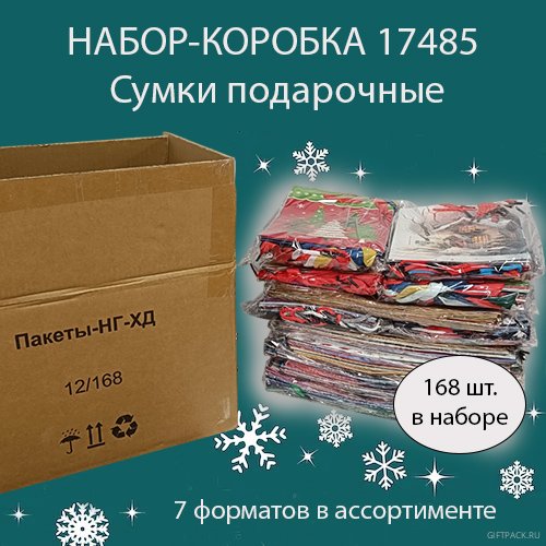 НАБОР-КОРОБКА 17485. Сумки подарочные NG. 7 форматов в ассортименте. 168 шт