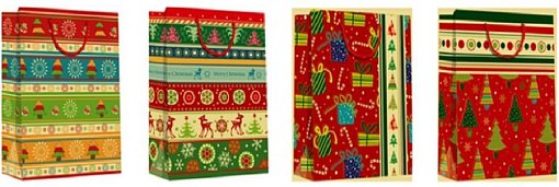 Новогодняя сумка крафт с Дедом Морозом. В упаковке 12 штук, 4 разных рисунка.