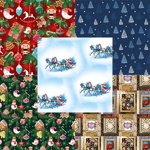 34353 Б-1. Новогодняя упаковочная бумага в рулоне из 10 листов 100х70 см (5 дизайнов по 2 листа)