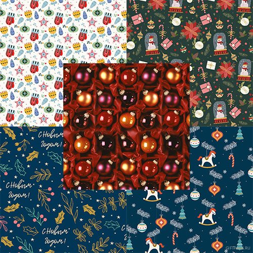34373 В-3. Новогодняя упаковочная бумага в рулоне из 25 листов 100х70 см (5 дизайнов по 5 листов)