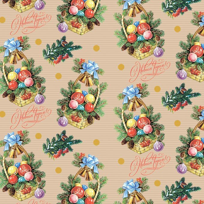 Бумага крафт НГ "Елочные Корзинки" 84см*10м. 40 г/м2 22шт/уп