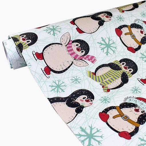 Бумага НГ 1*70 Дизайнерская бумага Пингвины на Белом 78г/м2 10шт/уп