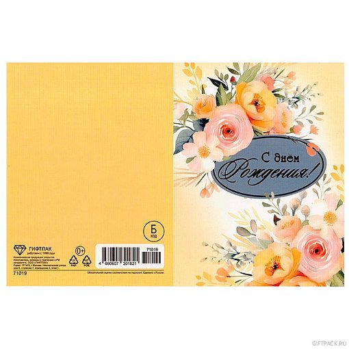 71019 Двойная открытка Код Б Букеты на персиковом. ОТ
