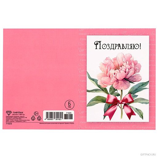 71023 Двойная открытка Код Б Пеон с бантиком. ОТ