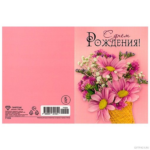 71024 Двойная открытка Код Б Букет в вафельном рожке. ОТ