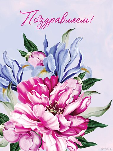 71058 Двойная открытка Код А Розово-голубые цветы. ОТ