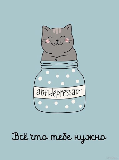 71064 Двойная открытка Код А Кот - антидипрессант. ОТ