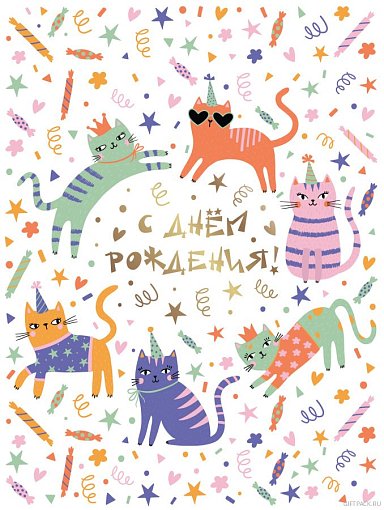 71065 Двойная открытка Код Б 5 Котов на ДР. ОТ