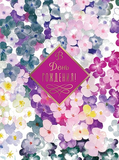 71069 Двойная открытка Код Б В день рождения в цветах. ОТ